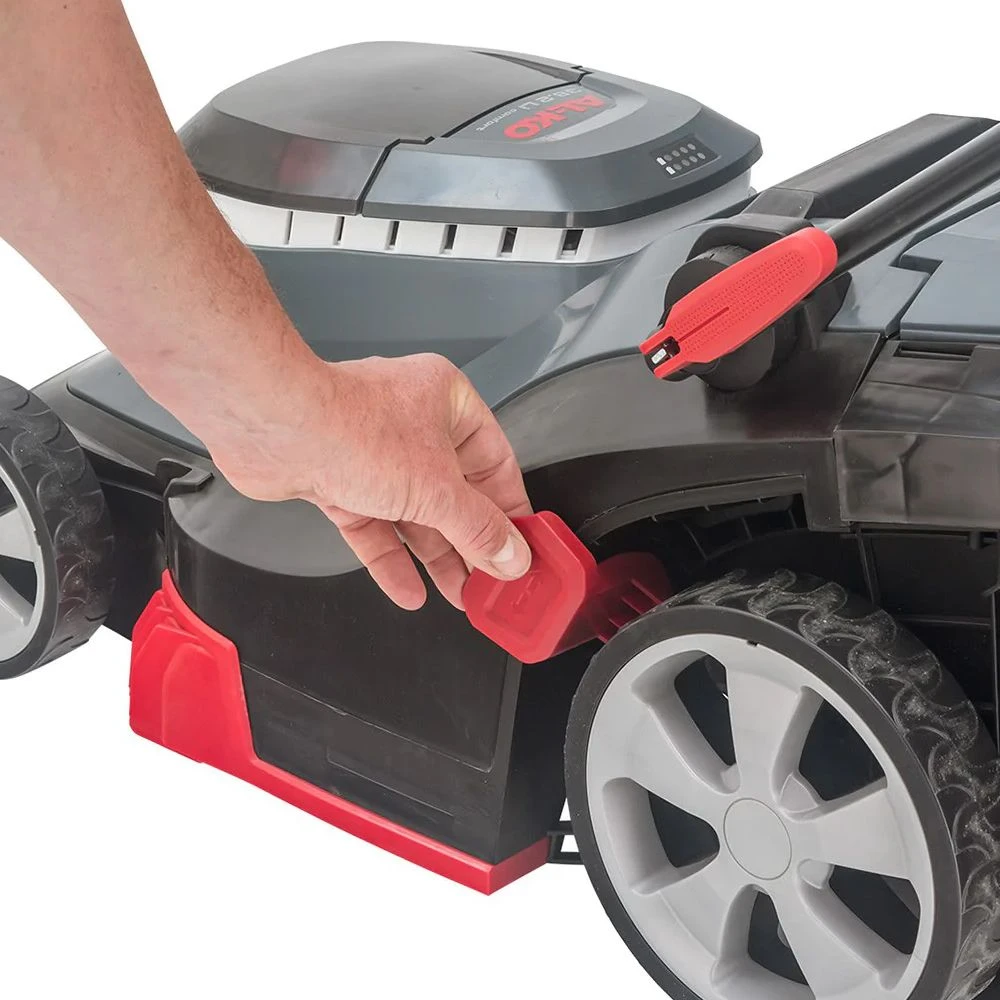 The AL-KO 3.82 Li R Comfort incorporates dual battery slots so you can get extended run times with two batteries (not provided). An LED battery indicator is located in clear sight to keep you informed of the charge level status. A push-propelled machine, the efficient motor offers high performance and efficiency.