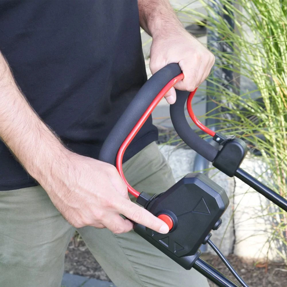 The AL-KO 3.82 Li R Easy incorporates dual battery slots so you can get extended run times with two batteries (not provided). An LED battery indicator is located in clear sight to keep you informed of the charge level status. A push-propelled machine, the efficient motor offers high performance and efficiency.