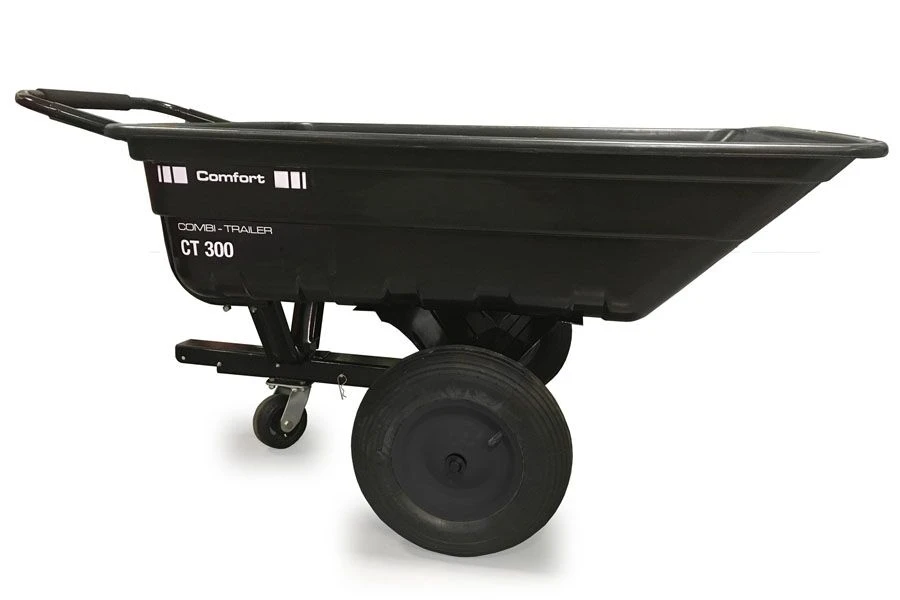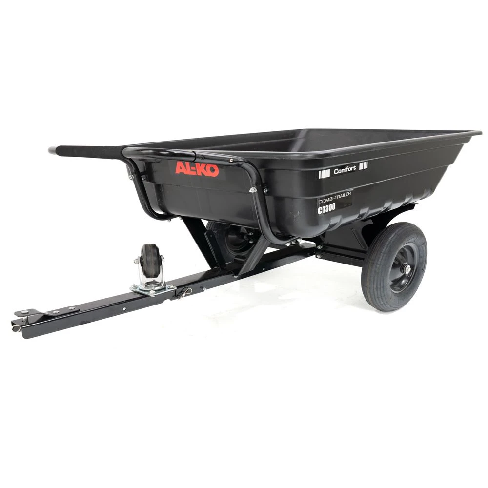 Whether the job is getting rid of horse manure, hauling firewood, moving sand or dumping gravel, an AL-KO CT 300 Comfort cart will deliver tasks safely, reliably and efficiently for years to come. The rust-resistant poly bed has a 300kg load capacity. The trailer is fitted with two pneumatic tyres and has a tipping facility.