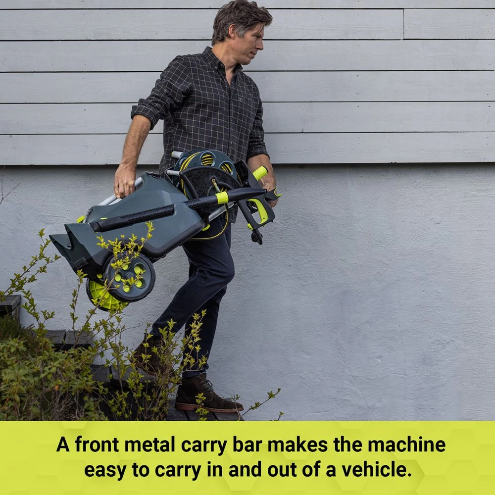 From the moment you lay your hands on the Evolution, you will feel the solidness of this pressure washer. All the parts are robustly made with no worries about breakage during use. Discover the power of the V4 pump and the raw, yet smooth impact during the removal of dirt and grime – even on fragile surfaces.