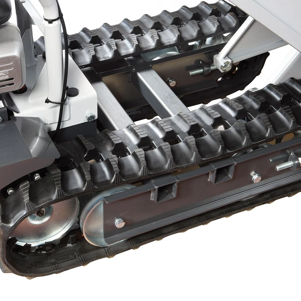 Designed for professional use, this is a dumper model with hydraulically operated load box tipping: ideal for transporting firewood, stone, sand and other building materials. Its increased dumping angle – 60° – meets the need for creating piles and mounds. Suited to all kinds of terrain, even on slopes, this transporter has a small steering radius, making it easy to handle.