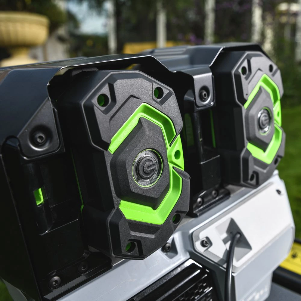 The Cobra Fortis 25E employs Peak Powerâ„¢ Technology which combines the power of any two industry-leading EGO 56V ARC Lithiumâ„¢ batteries to provide cleaner, quieter and safer lawn mowing at a fraction of the cost of petrol power. The operator’s LCD screen, integrated into the control panel, displays essential information including travel speed, battery charge level and an hour meter.