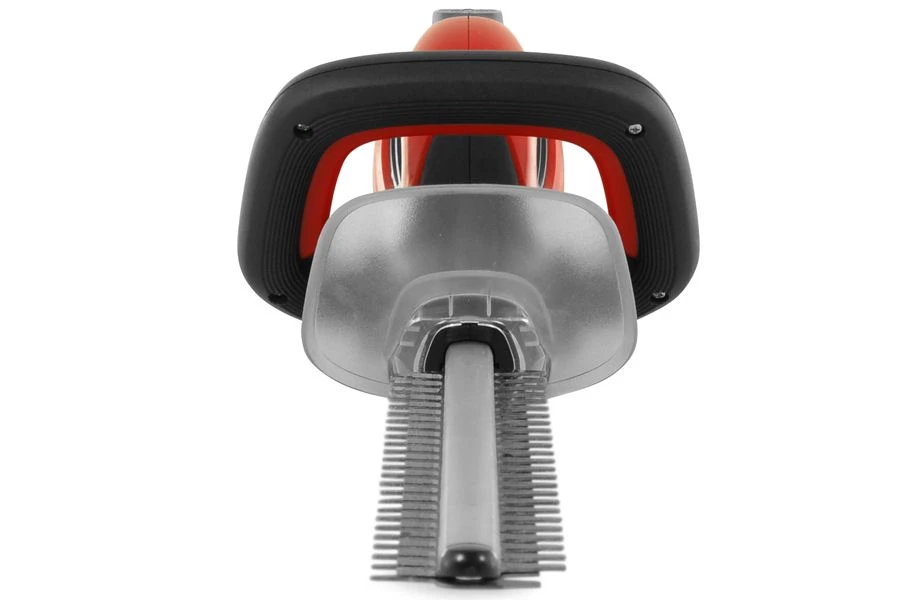 The Cobra H5024V is equipped with a 50cm (19″) double-sided cutting blade with a large 15mm tooth spacing which is a decent size for tackling most strubs and hedges. The reciprocating blades achieve a fast and even cut every time and a reduction in jamming or blockages as the blades keep material moving. Featuring two-handed operation and integrated blade guard for operator safety, the hedge trimmer weighs just 2.4kg including the battery.