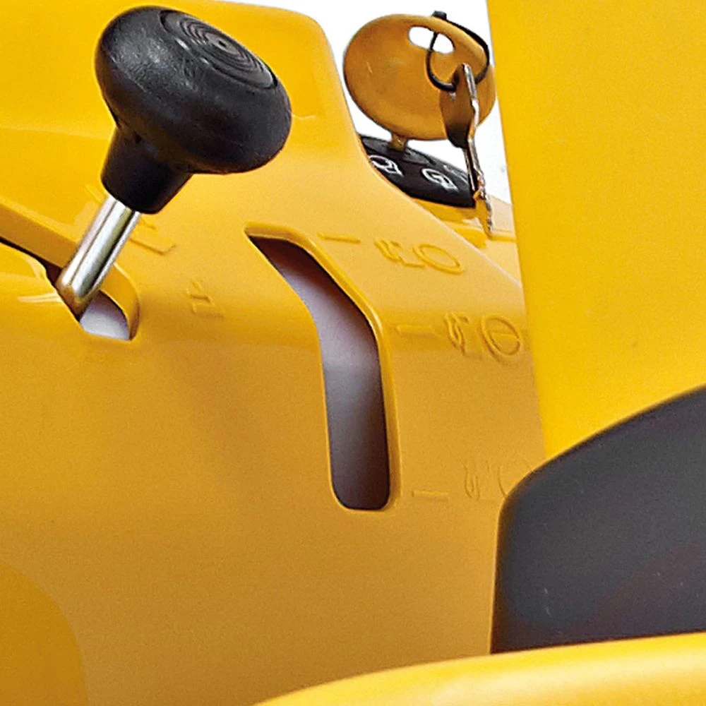 The tight turning circle of 46cm (18″) is smaller than most tractors which makes it ideal for mowing around obstacles such as trees and flowerbeds. Also important is the step-through chassis design, allowing very safe, easy mounting and dismounting. Â