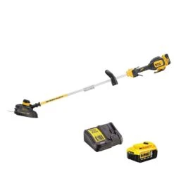 The DeWalt DCM571 FLEXVOLT XR battery-powered string trimmer is equipped with a 54V brushless motor (with metal motor housing) which delivers petrol-matching power and performance without the fumes or excessive noise.Â