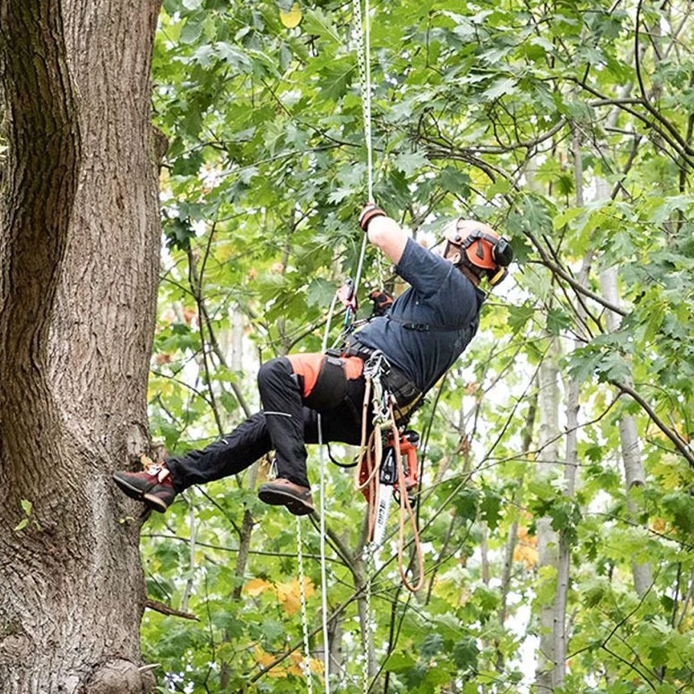 The patented quick draw harness ring enables hooking and unhooking your chainsaw with one simple movement.
