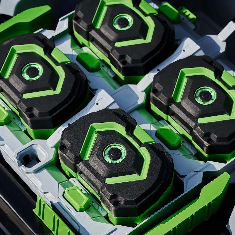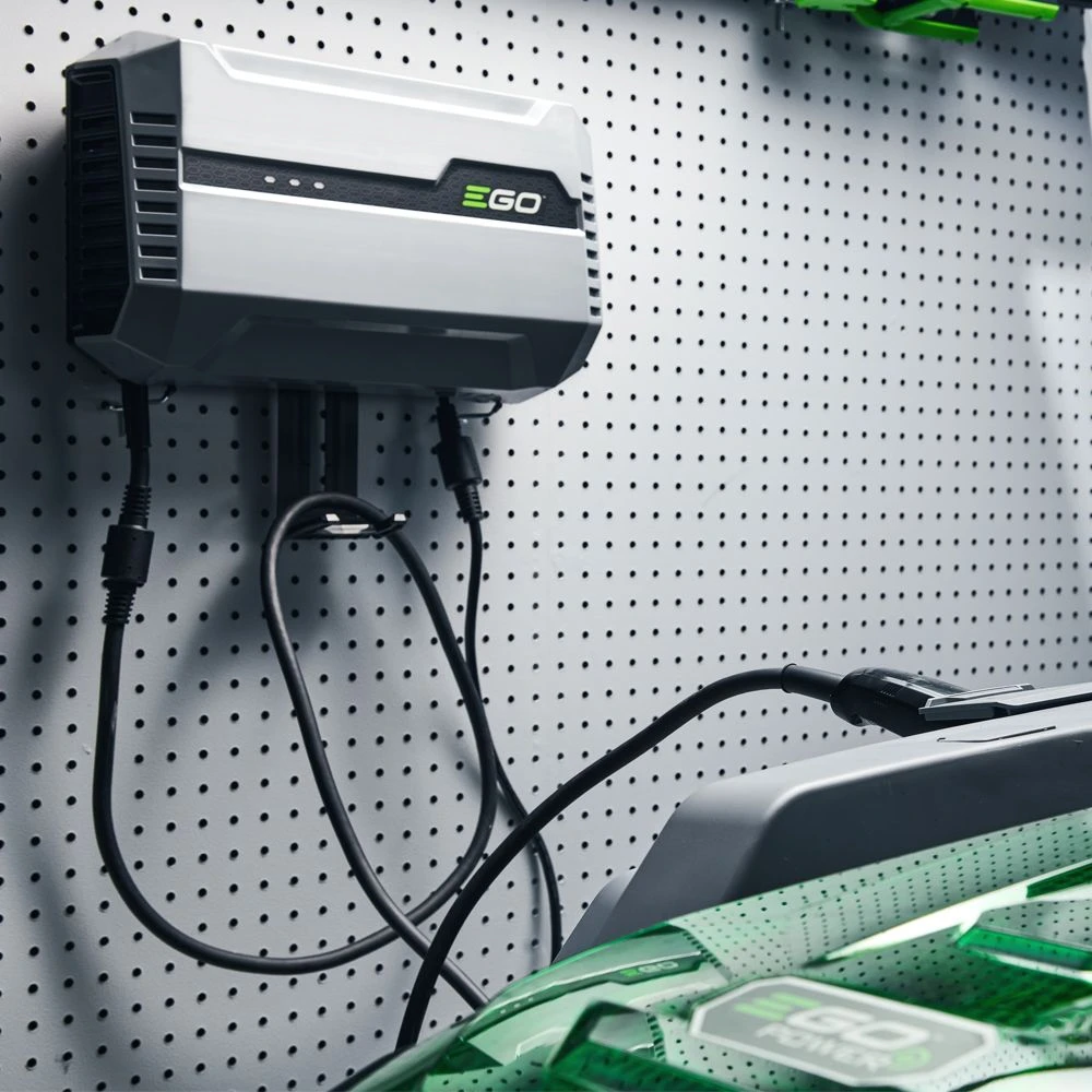 Featuring EGO Peak Powerâ„¢+ technology, the Z6 can hold up to six batteries so you can cut three, four, five acres or as many as needed. The industry’s fastest battery charger fully charges four 10.0Ah batteries, by simply plugging it in to the handy side charge port, in just two hours to give you four times the mowing experience.Â