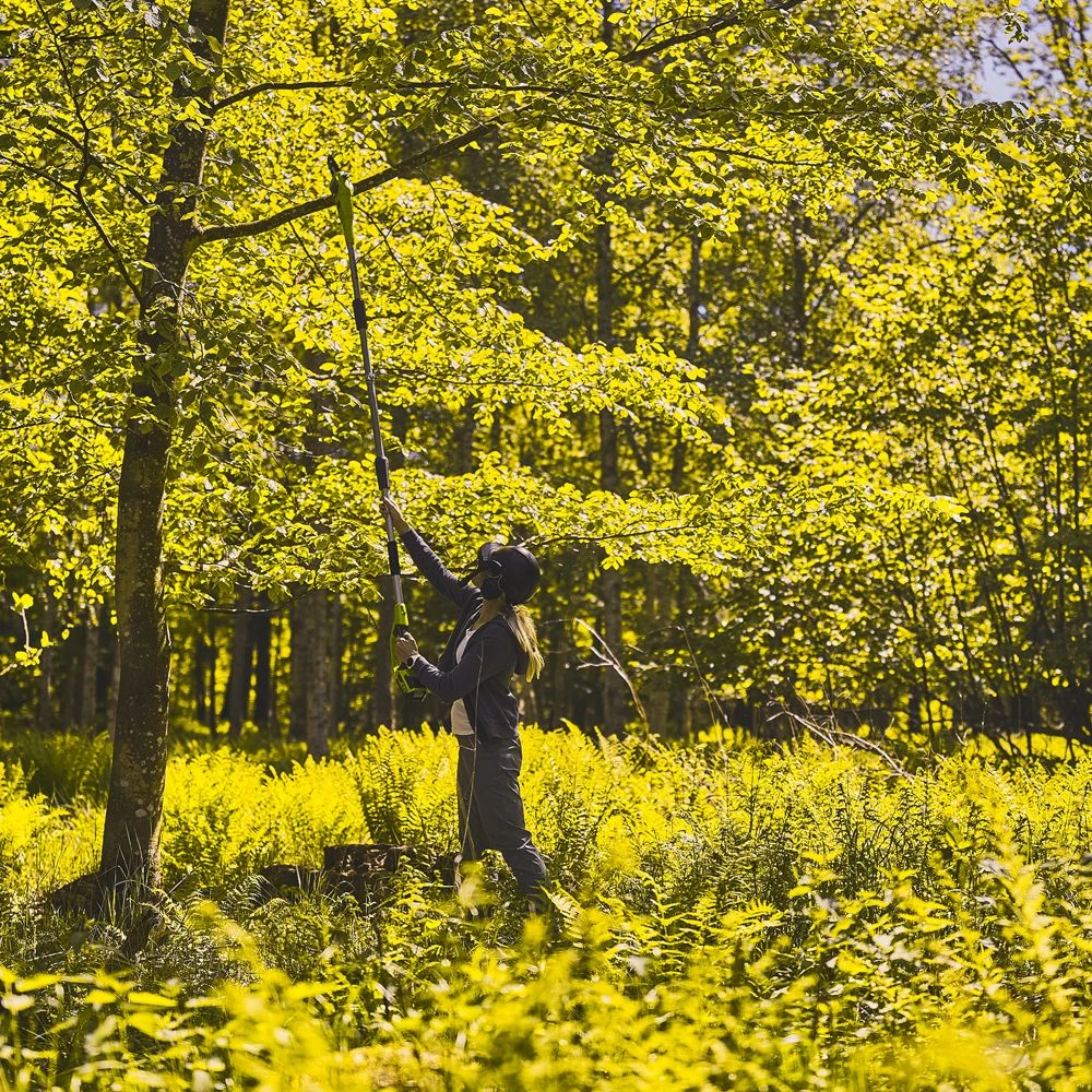 The GreenWorks 24v pole saw allows you to reach high into trees and bushes. This means you don’t have to stand on dangerous and wobbly ladders to be able to prune.