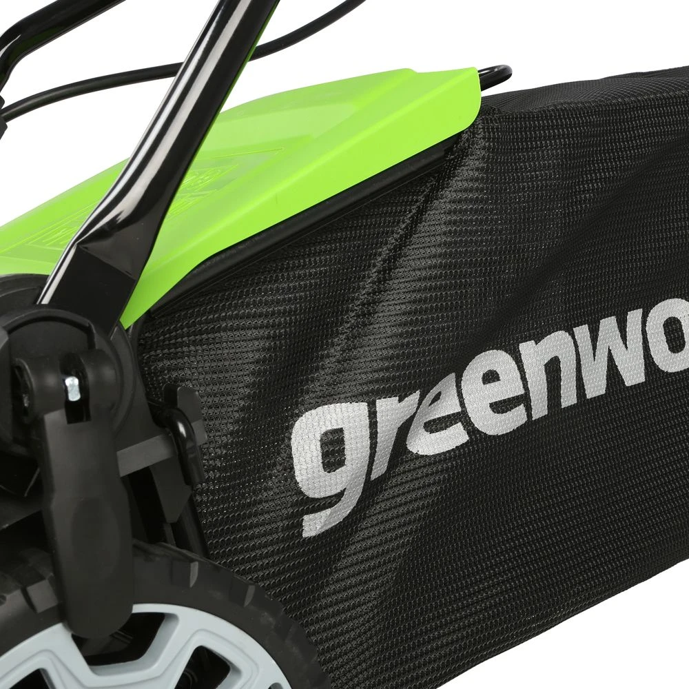Employing two 24V 2Ah lithium-ion batteries (not supplied with bare tool) in parallel to deliver 48V of running power, this compact and versatile GreenWorks 36cm push-propelled cordless lawn mower has 3-in-1 functionality.
