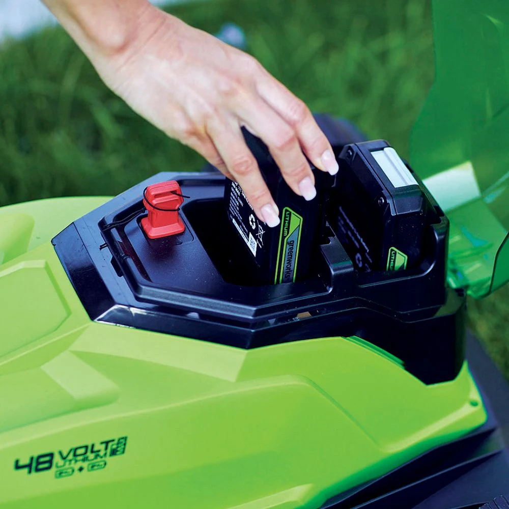 The latest innovation from GreenWorks allows two 24V batteries to combine in series to power a 48V motor. The benefits include additional power when mowing, while utilising compact 24V batteries which can be used in any of the 24V family of tools, from grass trimmers, hedge trimmers, chainsaws and even power tools.