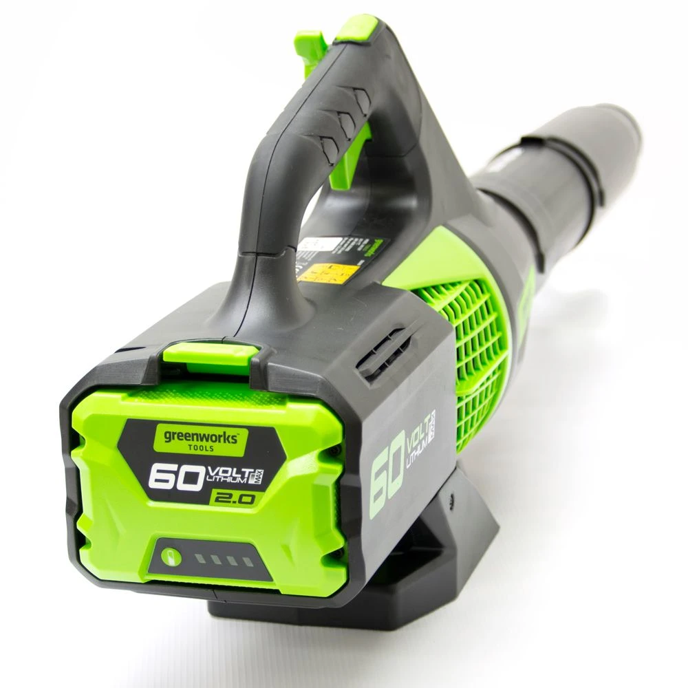 The GreenWorks GD60ABK4 is a professional quality leaf blower featuring an axial fan design and high efficiency DigiPro brushless motor engineered to provide more power, additional torque, quiet operation and longer motor life.