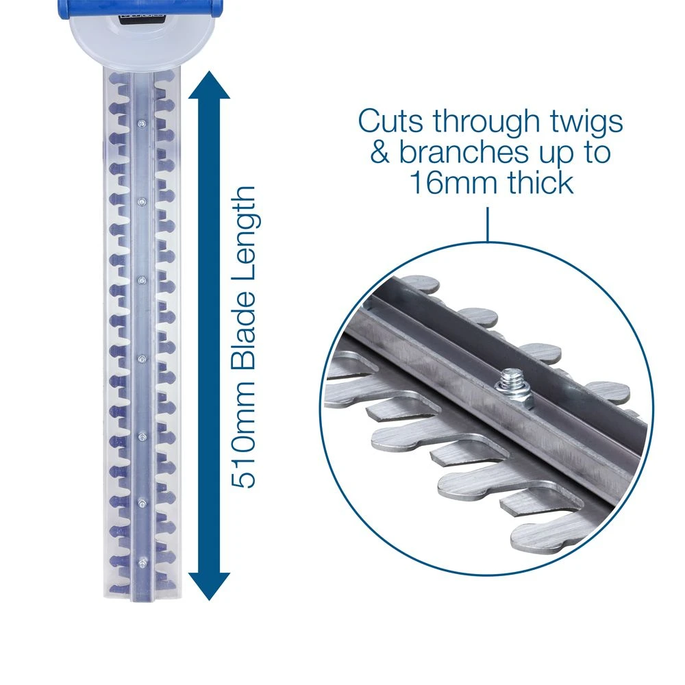 The 51cm diamond-ground, sharpened punched steel, double-action blade will slice through all types of hegding up to 16mm in diameter, providing a clean cut every time.