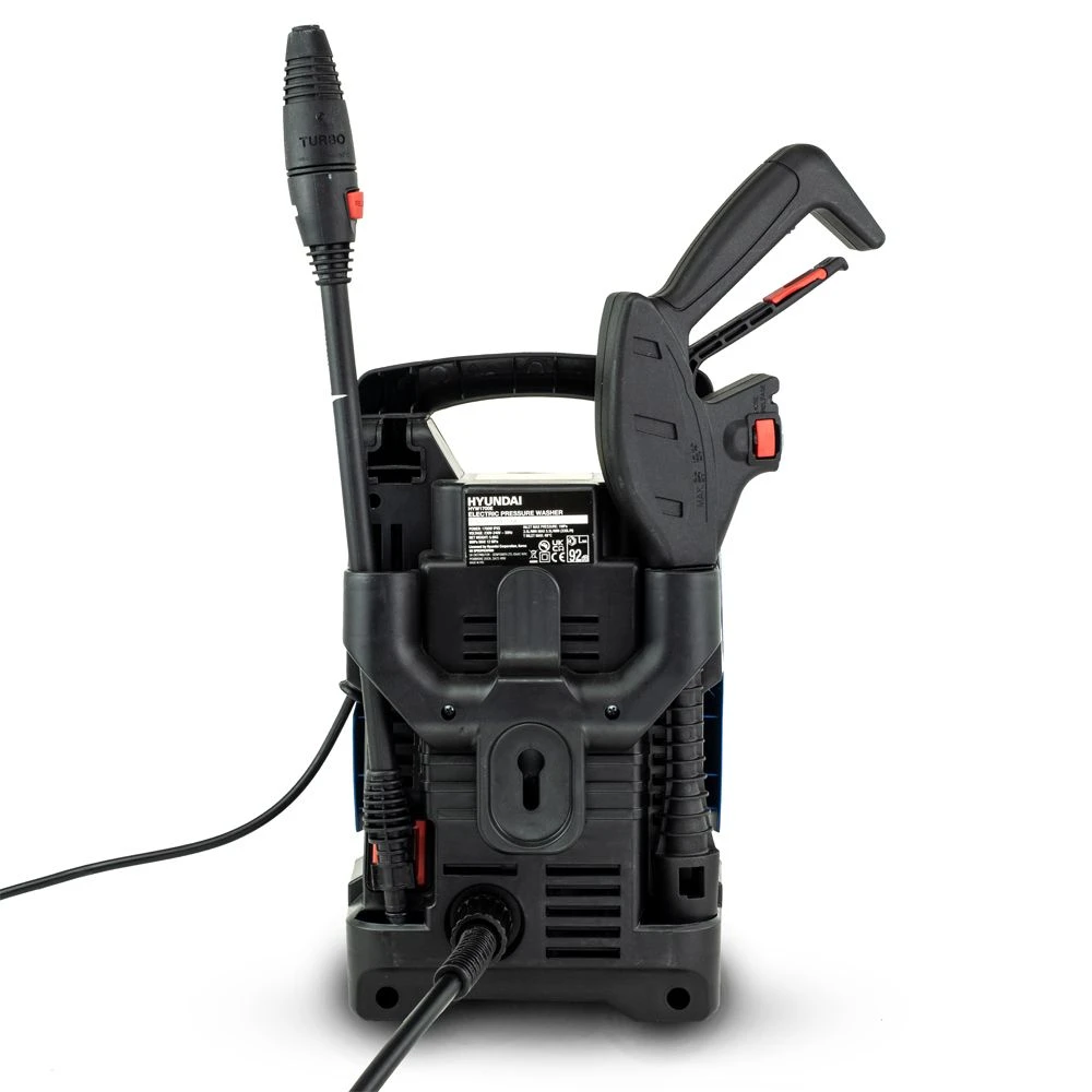 Designed with efficient storage and ease of use in mind, the Hyundai HYW1700EÂ high-pressure washer features designated spaces on its main body for storing the gun, lance, hose, attachments, and the electrical cable whilst the washer is not in use.