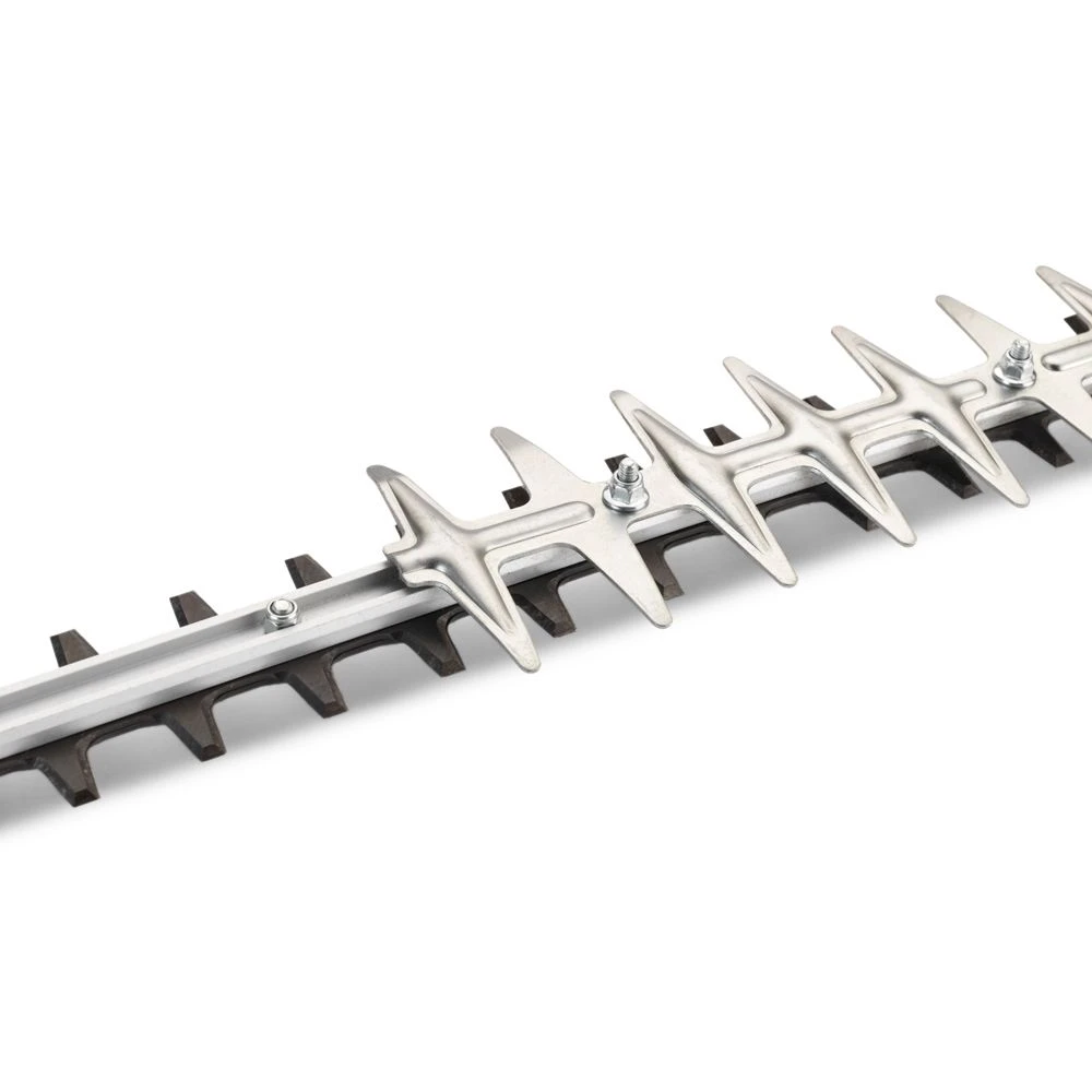 The HT 5622 has a blade length of 56cm and a blade gap of 22mm. Weighing only 5.2kg, this petrol hedge trimmer also features dual action blades, reciprocating cutting, Soft Start, ergonomic adjustable handle, low noise engine, anti-vibration handles, auto return stop switch, tool-less air filter and a visible fuel tank.