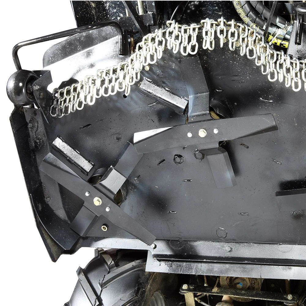 The Oleo-Mac GOLIATHÂ 110 4×4, with its 73cm turning radius, features a wide 110cm cutting deck. The cutting height adjustment is centralised from 40mm to 125mm in four stages. Operator comfort and protection is ensured thanks to the roll bar, side impact guards and seat belts.