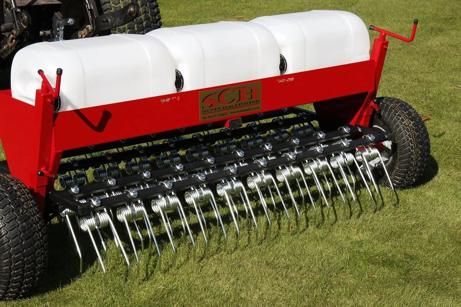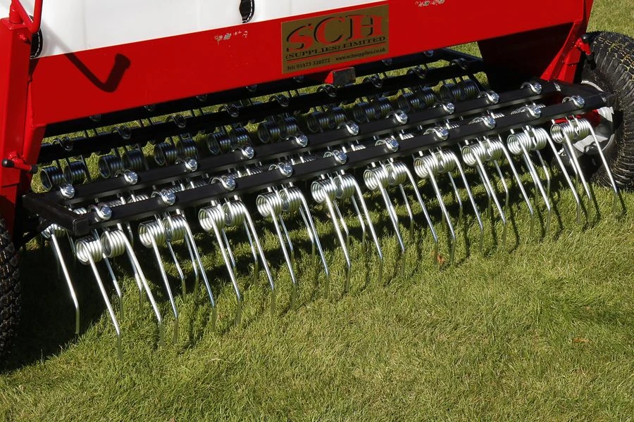 The carrier frame fitted with the 48″ dethatcher, comprises of four rows of staggered shock coiled tines which will tease out heavily matted grass and encourage tillering during the growing season. The D48 can also be used to freshen up gravel driveways, paths and horse arenas.