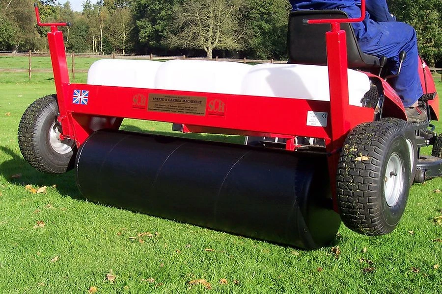 The roller weighs 150kg when ballasted with water. Simply add top-weight to the carrying frame for a firmer finish.
