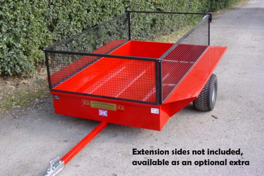 With a carrying capacity of 500kg (10cwt), this ATV trailer has 12″ high sides and the tailgate is hinged. The mudguards run the who length of the trailer to give extra carrying capacity for loads such as hay and straw bales, and oversized loads.
