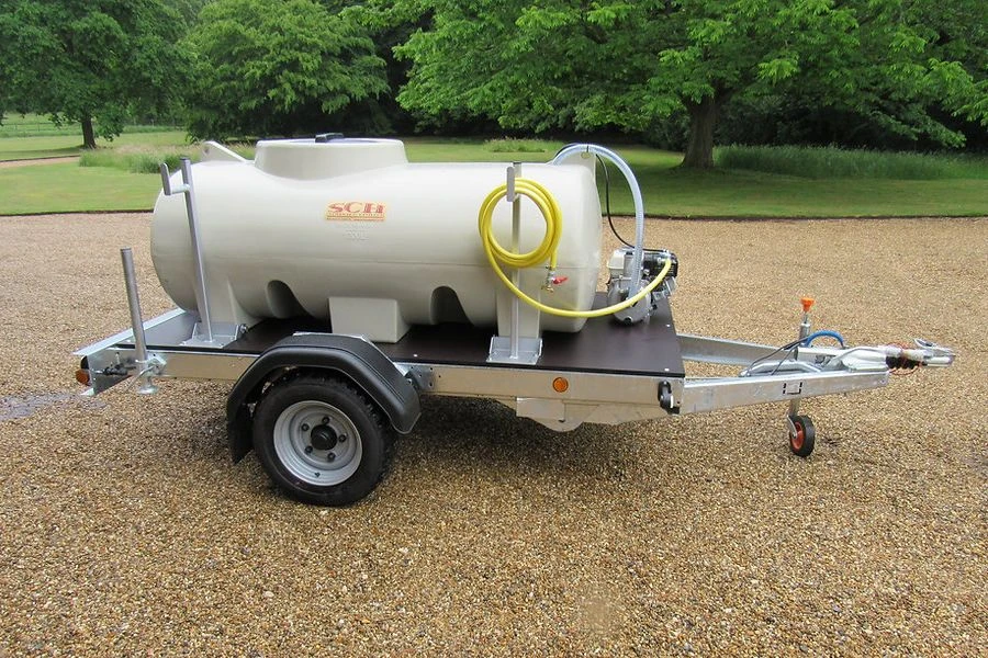 The HBU1200ATE Towed Water Unit has a huge 1200 litre capacity tank. The tank is supported on a strong steel frame complete with brakes, lights and a jockey wheel.Â