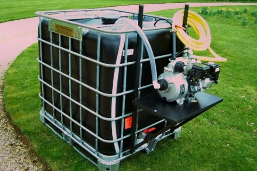 This quality skid-mounted watering unit is ideal for use on the rear of vehicles or trailers. With a 900 litre (200 gallon) capacity black water tank, it features a recirculating system for mixing liquid feed.