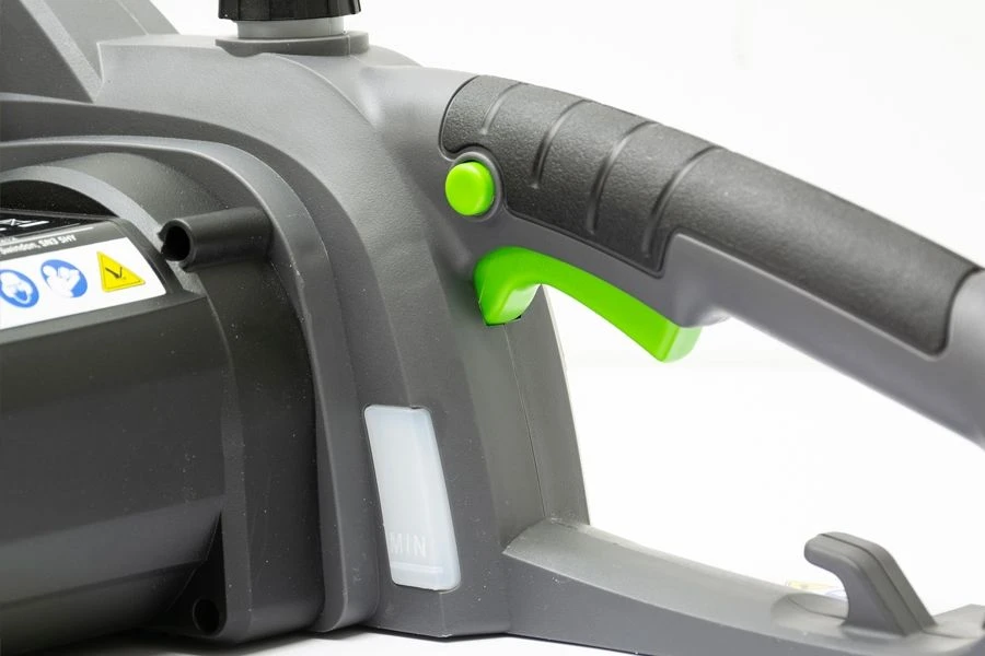 Powered by a 2200 watt electric motor, the THECS40 is equipped with a quality 40cm (16″) Oregon bar and chain. With a chain speed of 13.5m/s, it features a 240ml oil tank capacity and automatic oil pump.