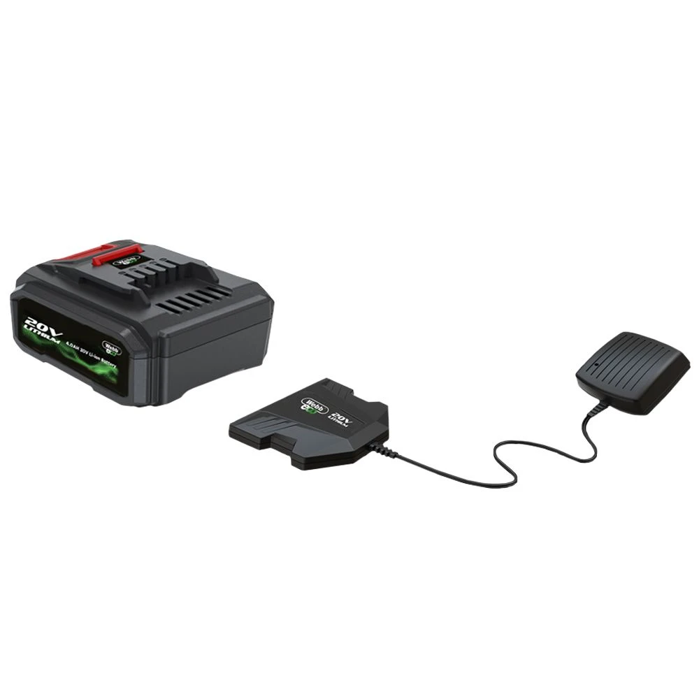 Powered by advanced 20V lithium-ion battery technology and a high-performance brushless motor, this lawn mower ensures efficient grass cutting with up to 35 minutes run time on a fully charged 4.0Ah battery. With a 33cm cutting width and five adjustable cutting heights ranging from 25mm to 65mm, it offers versatility in lawn maintenance. Its 35 litre collection box, designed with a mesh collector for improved airflow, maximises its capacity before needing emptying, reducing trips to the compost heap.