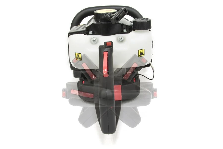 The rear handle rotates through five stages over 90 degrees left and right making it is possible to operate the machine on randomly shaped hedges at the most natural and safe working position.